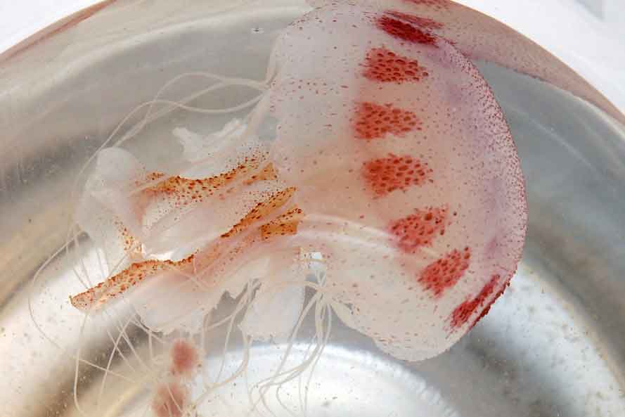 Evitar banhos em praias com ocorrências recentes de acidentes por águas-vivas e caravelas.
